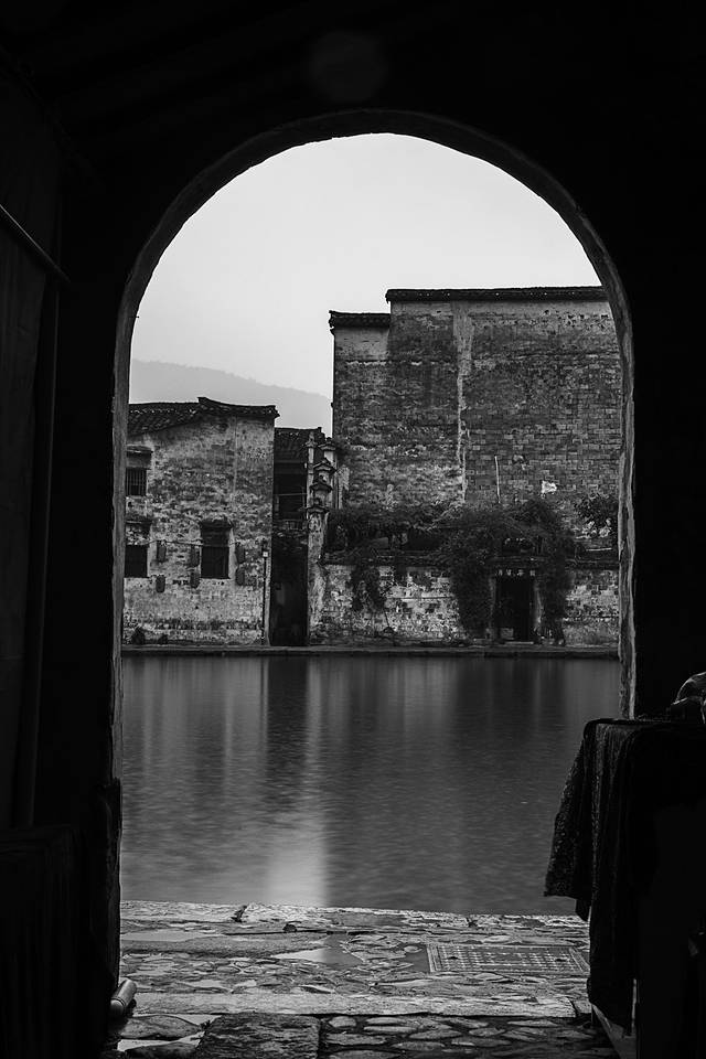 抛开这些深层次的东西,单纯从画面来看,《卧虎藏龙》在宏村的两处取景,着实是经典。下面的两张图分别是在宏村的外围的南湖,以及村内部的月沼。两处都有水和倒影,湖边的白墙青瓦,素雅绵长,简直一副天生的水墨之作。想起小时候学习美术的时候,最爱不过国画,所以,这次宏村行,或许也是一次怀旧吧。