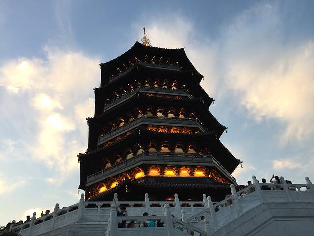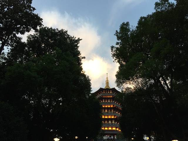 这塔已经翻修过了,已经蛮现代感啦!不过留下塔基供大家看,好多人丢钱进去啊,排队还算快呢,不过去雷峰塔就艰辛啦,坐电梯就排队吧等,要么爬楼梯去。我当然是坐电梯等咯。一个小时吧轮到我上了。在塔顶可以看到西湖景色,还能看到苏堤呢,比在苏堤上看好。现在刚好是下午,夕阳照来,雷峰塔闪着金光