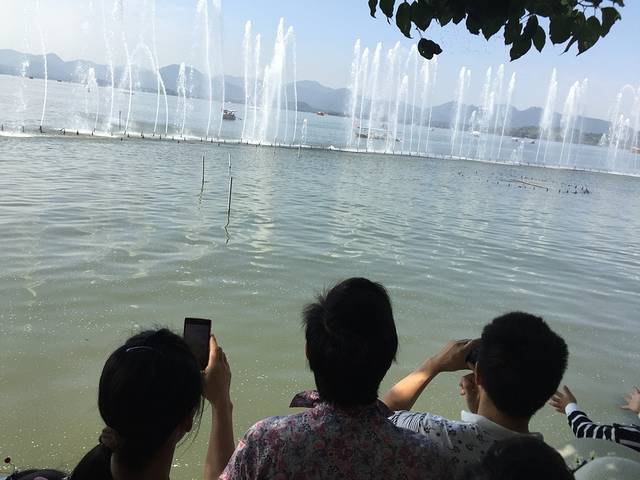 吃完知味观,就进了西湖,刚好就看到音乐喷泉。好多人,还好带了自拍杆,要不就看不到。西湖的树上有松鼠,嘿嘿,拍到了。