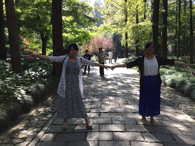 雷峰塔下来后我们就往前走本来打算看花港观鱼的,天已经很黑,没办法看啦。