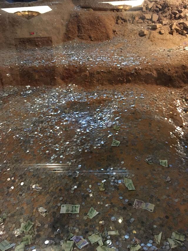 白天看三个塔晚上看32个月亮,阴天就只有30个月亮。.........一元钱的背面