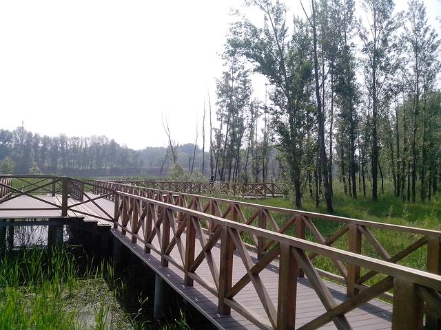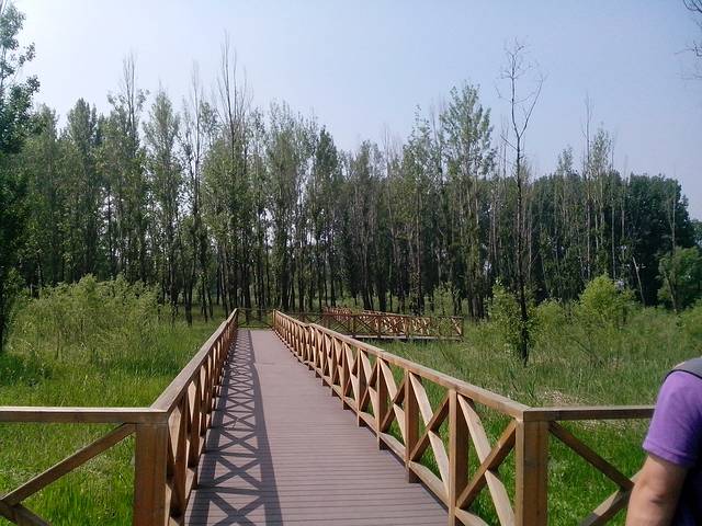 停车往深处走,路过树林之后就是一条长长的木质栈道,一会延伸进公园湿地内。