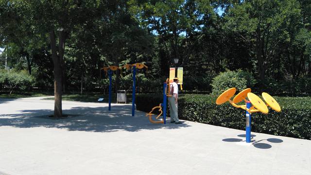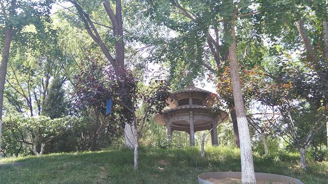 从马路上也能看到公园里的小亭子,不过此时人已经走在了炽热的公路上了。