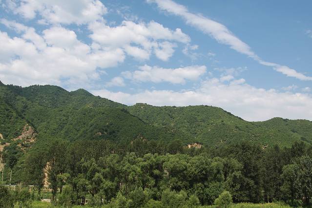 看了水库我们继续前行。这样已经进入了百里画廊景区。景区很大,各个景点也不在一起。我们执意往前,沿途看山、看云、看书,有时在一片小平原上驰骋,左边有蓝天白云下的山;有时又在山谷里行进,右边有绿树山石下的村落。