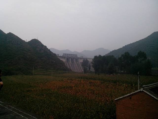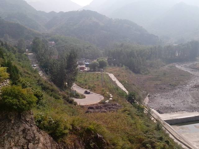 沿途,有山就有风光。看到水库的大闸,看到玉米地,就到了。