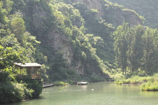 稍稍清醒了一下头脑,早餐后决定在附件玩玩。所谓十渡是由原来一连串的渡口组成,现在各个渡口早就变成了公路,但各个地方都有游玩的场所,十分有名气的其实不多。看了看落脚点身后的蹦极跳台,我们决定去孤山寨玩玩。