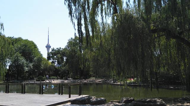 今天天气真的不错,站在湖畔可以眺望远处的电视塔。