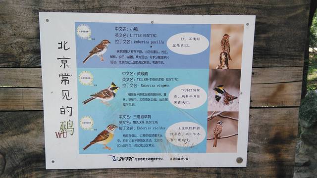 路途上随处可以看到对鸟类的介绍,看来公园里一定有这些鸟类出没。来前查询资料说百望山最适合观看猛禽类。呵呵,下次再背个更大倍数的望远镜。