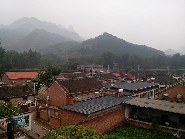 在柳沟吃过饭已经是傍晚了,吃饭人很多,老板忙到顾不过来。吃饭环境典型的农村院落加大棚,常出游的都体会过。由于忙着催菜、吃饭、照顾小的们,没有来得及拍照。豆腐宴照片和内容还是自己搜吧。有几道菜还是蛮好吃的,一些可能吃不惯。这个因人而异,不评论。普通农家的马路对面有一处整齐的建筑,看着似乎是度假村一类。没有去仔细研究,白墙尖顶感觉好看却似乎不是这里的东西。