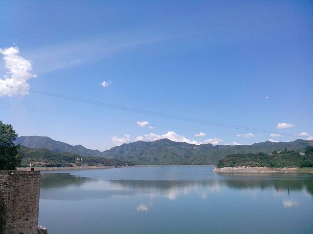 这就是白河堡水库了,水库大坝上照相是最好的选择,景致很好。而且,公路走过来这里是唯一的有公共卫生间的地方,路边停车也很方便。不过,如果车多可尽量不要占用太多车道,这个山路都不是特别宽敞的。