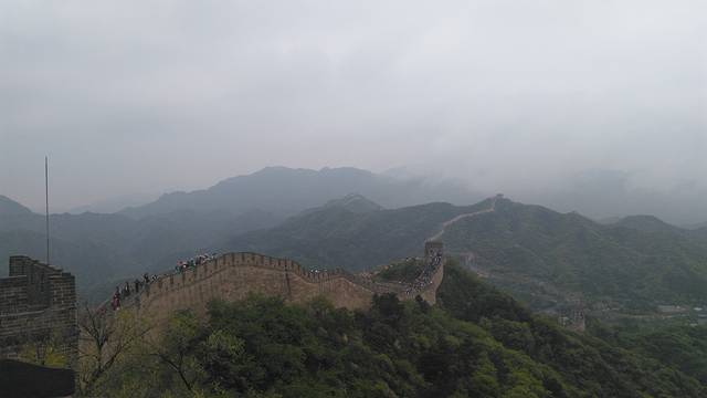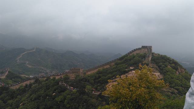阴雨天,连绵起伏山岳上的长城,显得有些殷柔美,失却了想象中的雄伟壮观。