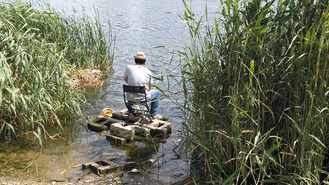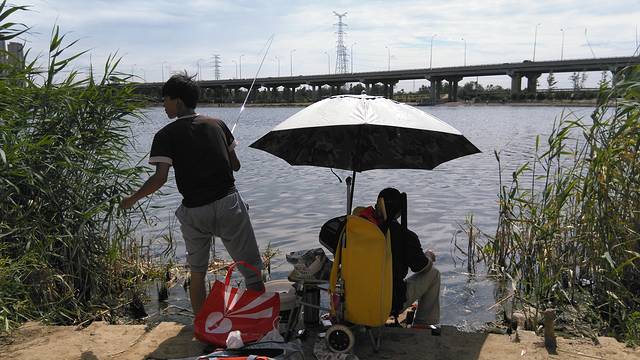 每一个芦苇空挡之处都有钓鱼的人正在愿者上钩。