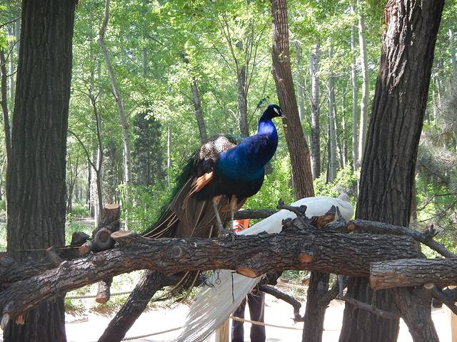 孔雀漂亮,就是站累了不开屏。