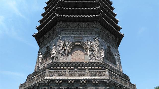 越来越看清了古塔上的雕刻,精美至极,虽有些残破,但你定能想象出当初的模样。