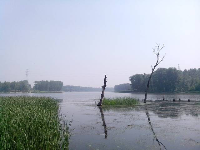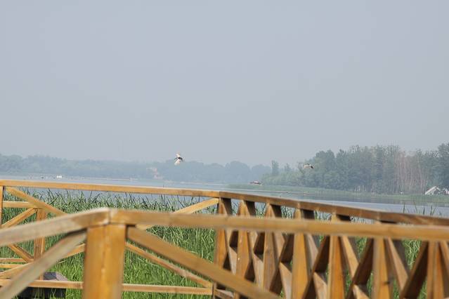 湿地内湖面宽阔,芦苇中可以听到水鸟的叫声。