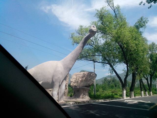 沿路上很顺利,就是同行的车太多,总是丢三落四的。好在大方向都对,车速也都不快。只要看到路边的大恐龙雕塑,你就知道我们方向正确了。