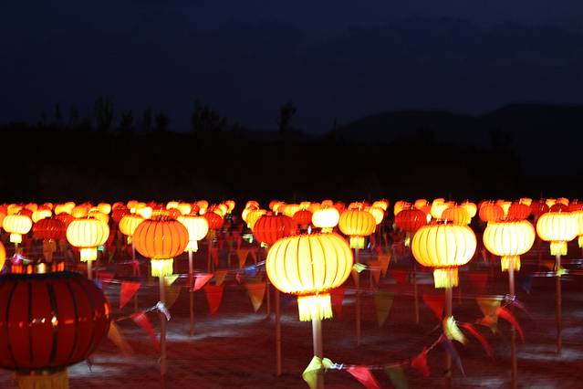 玩不够三人自行车,我们又发现了公路路基下的灯笼阵。这是当地人为游人准备的一个迷宫。不知道收不收费,反正晚上是随便玩了。
