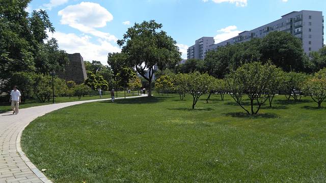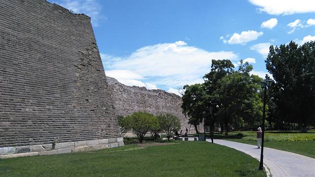 绿地中的大树生长的很旺盛,不知道是后来栽培的?还是原本就屹立在这里,看到了这段城墙的变迁?