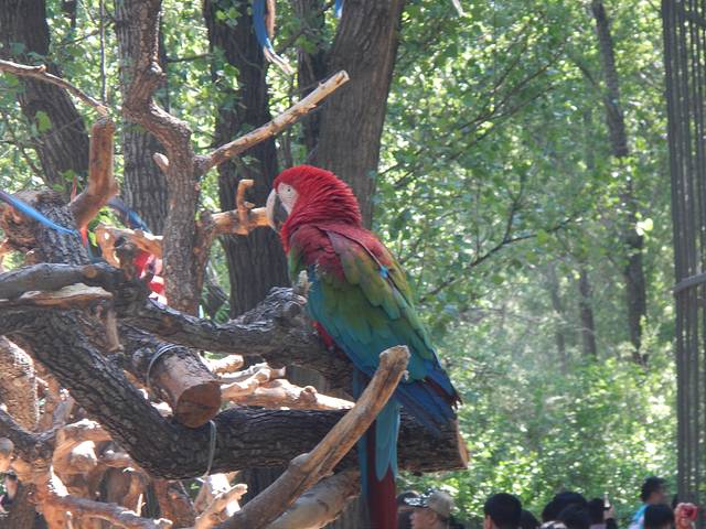 大鹦鹉很炫,呆呆地站在树桩上。