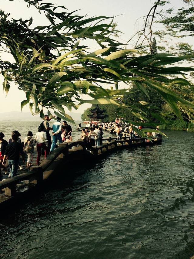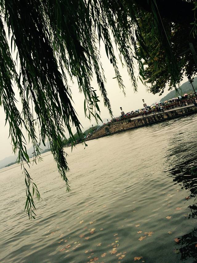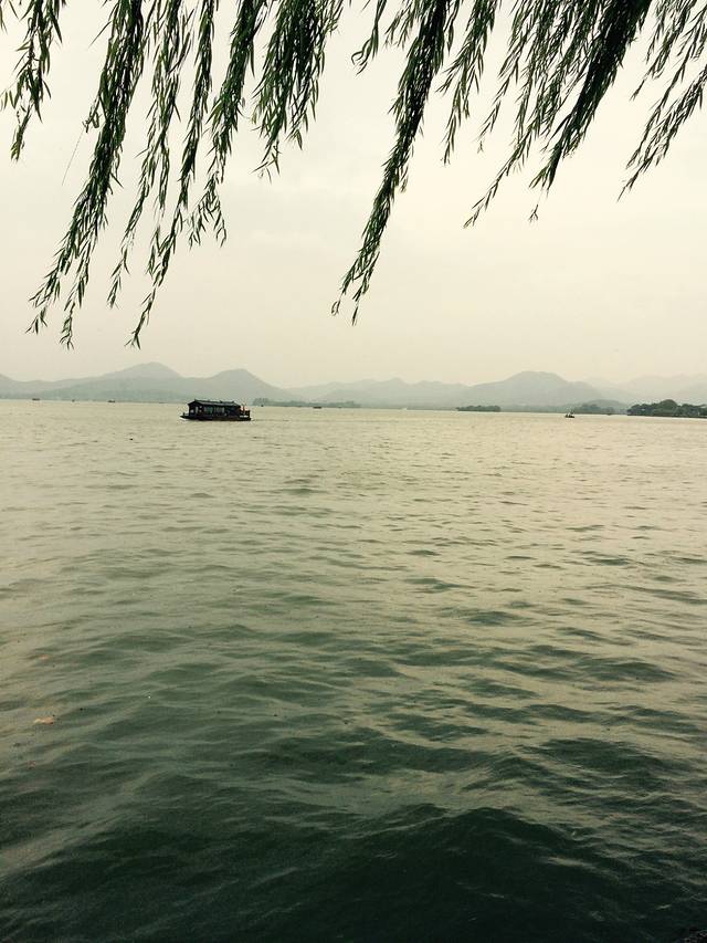 杭州第一天,楼下吃了早饭,西湖走起!天公不作美,竟然下起了雨,但是并不妨碍我们游玩的心情。我们是从住宿的地方走着去的西湖,大概20多分钟,其实并不远,但是因为不认识路,各种问路。到达西湖之后发现,可能是由于下雨的缘故,并没有想象中的那么多人。两个人一路走一路拍照,不知不觉的雨停了,天气还算给力。不得不说,西湖真的好大啊,逛到中午饿的不行了,就在雷峰塔附近的马路边上找了个饭店吃了点饭,点了一个西湖醋鱼跟杭州小炒,两碗米饭,就要了我们116大洋,菜量少的很,味道也不怎么样,真是宰人啊!(建议大家可以自备干粮,景区附近的东西真是贵的要死)西湖太大,走走停停的逛了几乎一天,腿已然不是自己的腿了,打道回府,还不错,住宿的旁边就有一个外婆家,于是晚饭在外婆家解决,人很多,需要排号。