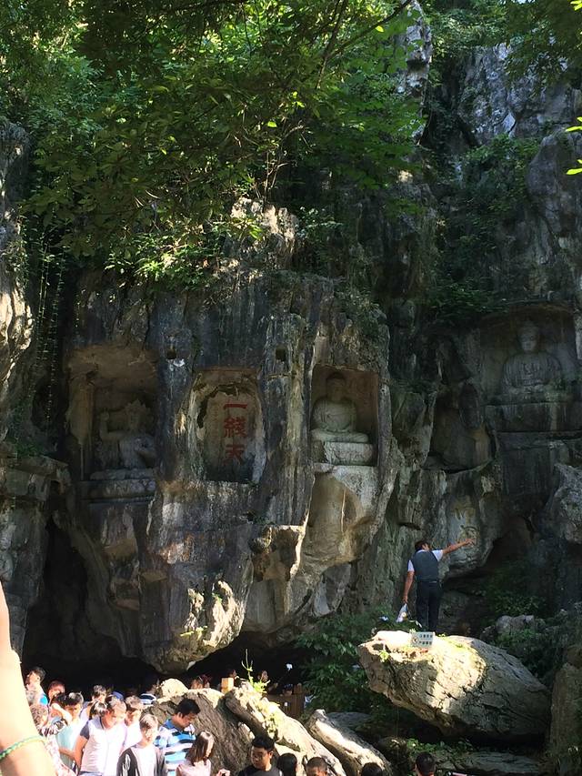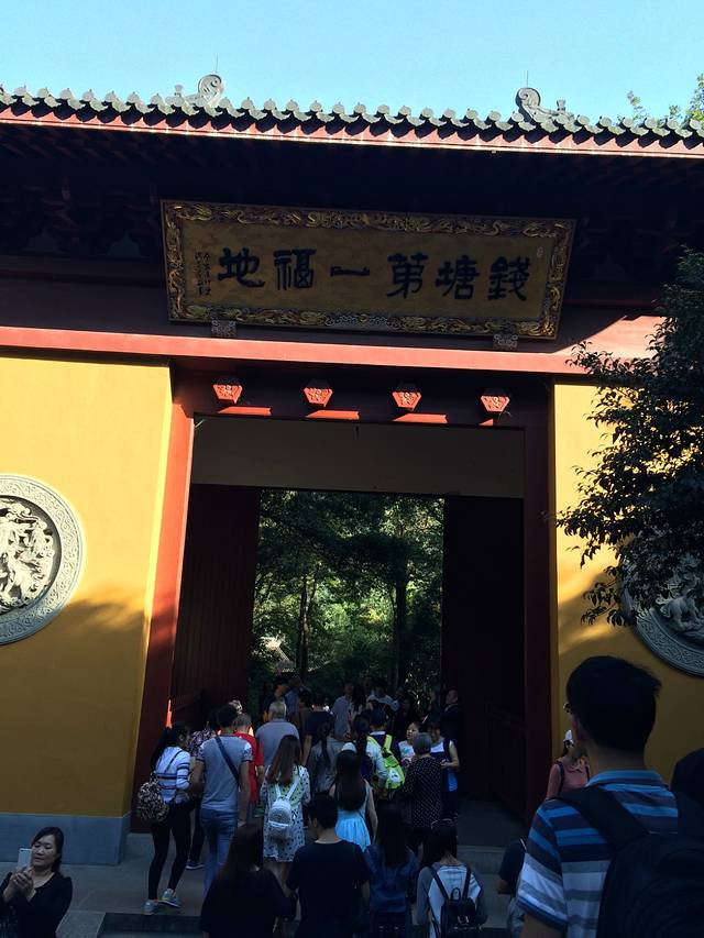 逛完龙井村已是下午两点左右了,倒了一趟公交车去了灵隐。灵隐旁吃饭的地方倒是不少,因为已是下午2点多了,饥肠辘辘的我们各点了一碗面充饥,吃完直奔灵隐。灵隐的人很多,刚进去的时候会发现好多佛像是雕刻在山上的,大大小小的很多。因为门票是灵隐和飞来峰的,如果想要进灵隐寺上香拜佛的话是要单收费的。飞来峰虽然不算高,但是台阶相当窄,且没有护栏,走的时候一定要小心。