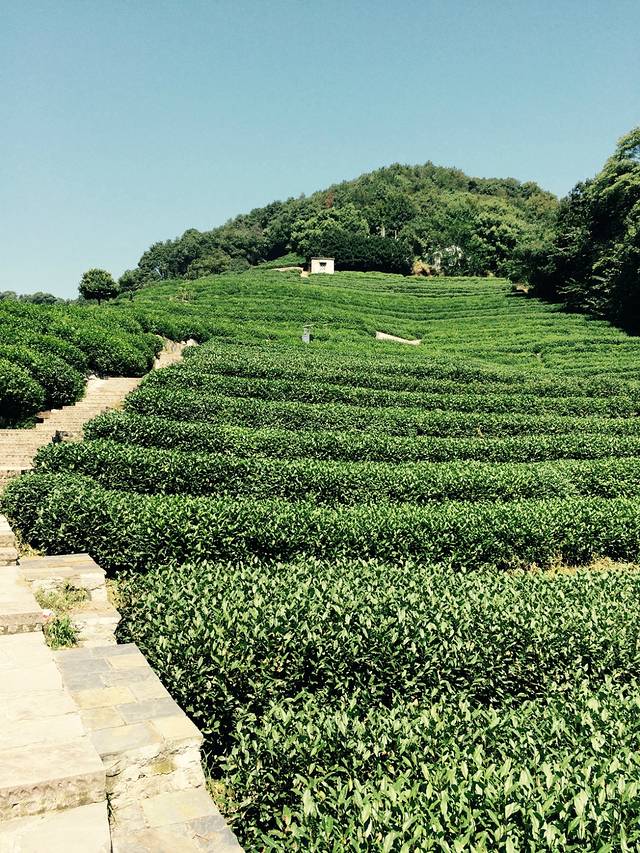 去过了九溪十八涧,又回到了龙井村,里面有一个老龙井,是要门票的,我们觉得也没有啥可逛的,无外乎就是龙井茶什么的,就没进去。就在一片茶园逛了逛,应该是农户家自己的茶园,放眼望去,一片绿色,亲临大自然!