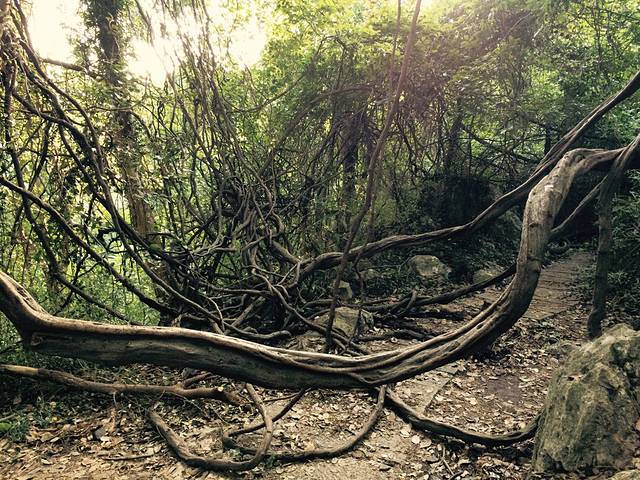 飞来峰的树长得奇形怪状的,像一条条大蛇。