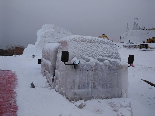 因为一些工程还没有完成,最好的冰雕还在大棚里施工者,远远的偷窥进去,还是不错的。