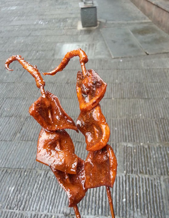 鱿鱼肉很嫩很嫩,香辣味道,火红的颜色看着就很有食欲,建议买5串,一方面是一串很少,一方面是吃完还想再吃。10元5串