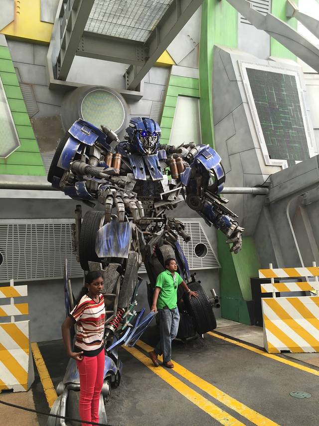 这么算下来我们一共坐了六个不同的过山车,加上另一个全球首创的变形金刚3D对决之终极战斗。戴上3D眼镜,坐上视死如归的装甲战车,跟着变形金刚一起翻滚、急坠、冲上云霄。。。是谁跟我说这个就是去看电影的?下来之后我晕我晕我晕晕晕。