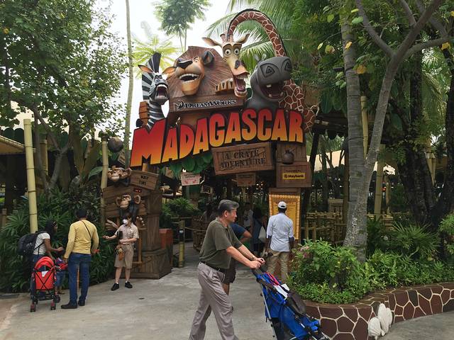 好莱坞走到底左转就是马达加斯加(Madagascar),这部动画片我想没有人会不爱吧,狮王Alex、斑马Matty、河马Gloria和长颈鹿Melman,四个小伙伴的大冒险,我三岁的小侄子起码看了不下二十遍了。在这里看到跟可爱的主角们合影的机会,还有丛林主题的旋转木马,KH说有一个木箱漂流记是很适合全家一起游玩的皮筏河流项目,特别是炎热的盛夏,还有什么能够比玩水更让人觉得凉爽的呢?