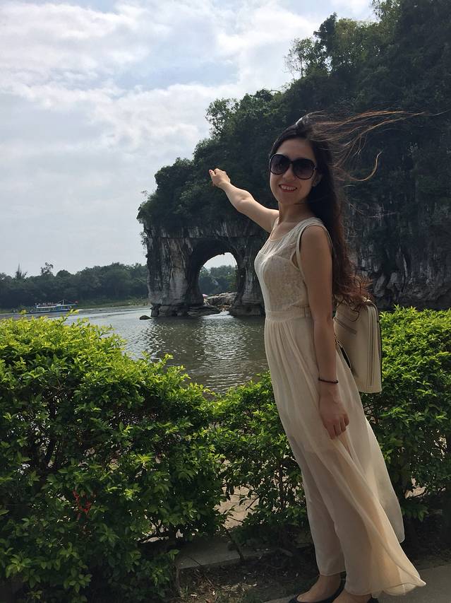 要想看到象鼻子,就得到山对面。于是我们下山去找象鼻,果然和象鼻合照的人很多,大自然真是鬼斧神工,也感叹这天地匠心独具