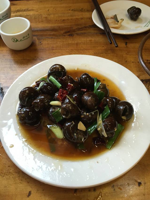 中午回到西街,又碰见一个老同学,一起吃个饭,味道很一般啦,还是有点后悔没去吃斑鱼火锅😢,不过尝到了传说中的田螺酿,男友很喜欢!
