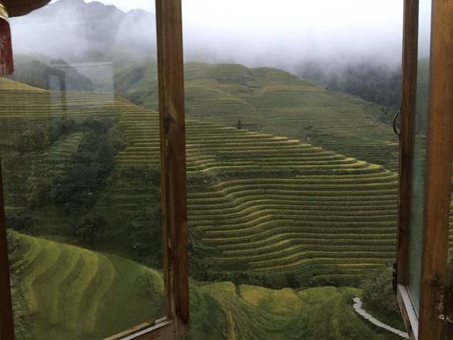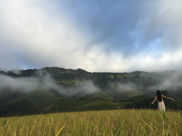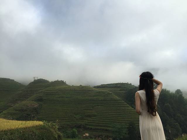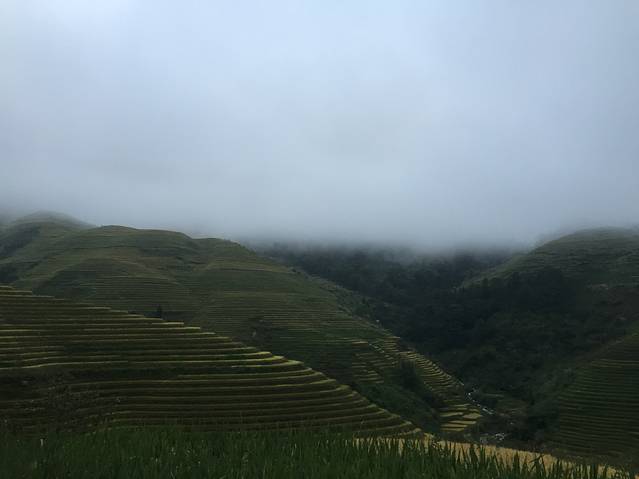 10月6日龙脊梯田,一大早坐上大巴直达景区,免得倒车麻烦,坐了3个小时才到,到的时候已经中午了。天气比较阴,路上车不多,但还是堵了一会儿。接下来的游览,真是令人震撼!一望无际的梯田,层叠交接而上,一路风光如诗如画,彻底融入大自然,感叹劳动人民力量与智慧的结晶