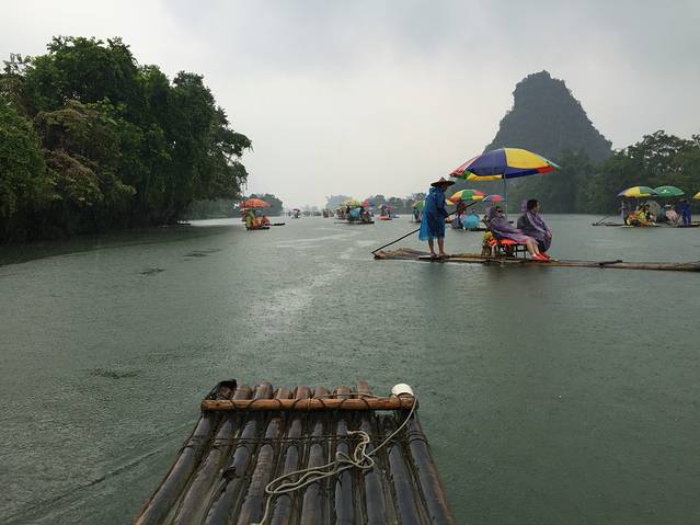 10月5日遇龙河竹筏漂流,天一直在下雨,早上下的还特别大,但是昨天已经订好了,所以还是去阳朔公园门口等车过去漂流,漂的夏堂码头到旧县再到夏堂码头的,只有一个坝,不过昨天已经漂够了刺激的,今天主要来漂平静河水的,中间还有冲浪,照片拍出来效果不错!