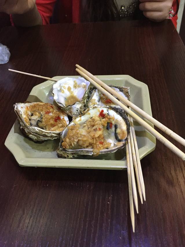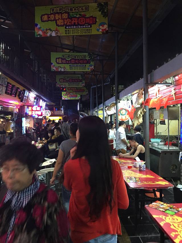 闲逛着来到了步行街,吃了碗闻名已久的螺獅粉,特别加了酸辣,味道正宗,果然名不虚传!在路边小店又要了杯玉米汁,真材实料打出来的汁浓味厚,口感很好哦!一路上小吃满目琳琅,看到觊觎已久的烤生蚝,我忍不住要了4个,尝了尝很新鲜蒜香十足。桂林小吃很多,价格也不贵,正中下怀!哈哈!