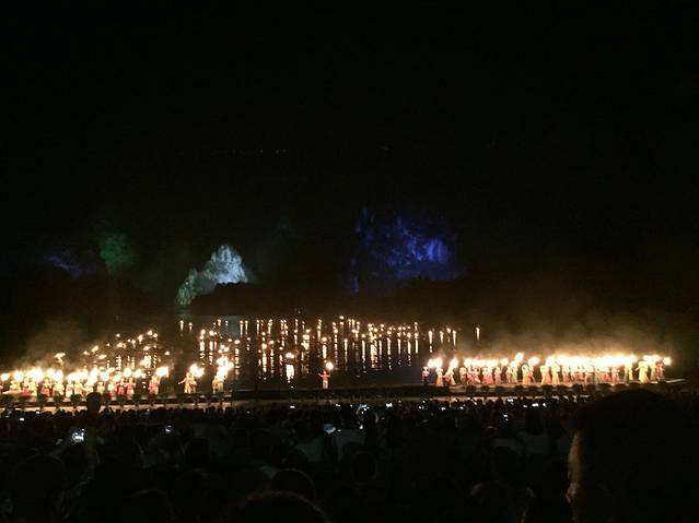 说起阳朔,想到的还有印象·刘三姐,是张艺谋导演的大型山水实景歌舞剧。其实本人对歌舞剧没什么兴趣,奈何人们常言来到阳朔就要去看刘三姐,不看我又怕错过什么,既然来了就顺便来看看。一个晚上三场,一场就有4000多人观看,提前定的票被要求加价😢,算下来180/人,不过场面确实挺壮观,灯光效果用的很好,演员目测数百人了,还蛮震撼的!