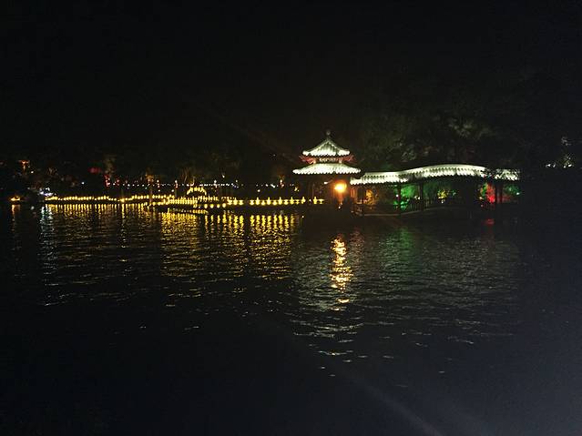 各类彩灯很漂亮,树上、湖面、桥上处处有五彩斑斓的夜灯,可惜照不出效果。不过还是一饱眼福,尤其是水晶桥、日月塔等,更是令人流连忘返。