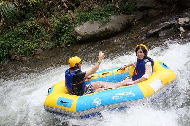 10月4日龙颈河漂流,特别特别刺激,全程两个小时,全身湿透,水流湍急,必须备上一套衣服,出来换上。男生估计都会喜欢,漂完真的全身湿透透吧。天气小雨,漂流还是有点冷了,尤其是在小皮艇被水灌满的时候。漂流全程有工作人员给拍照,全套电子版80,价格还算良心,而且自己也拍不到什么,买来还是很有纪念意义的
