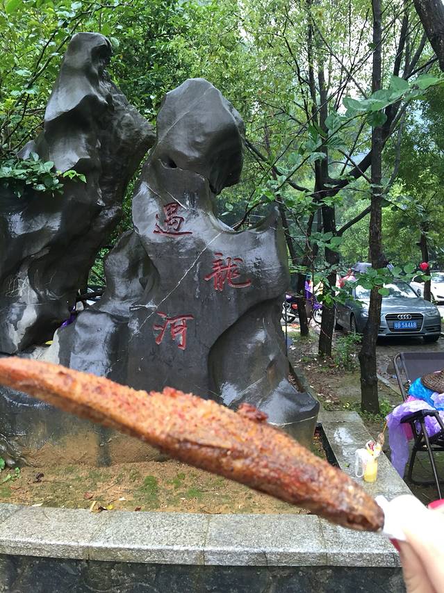 漂完来条烤鱼😄,前方遇龙河的标志石碑