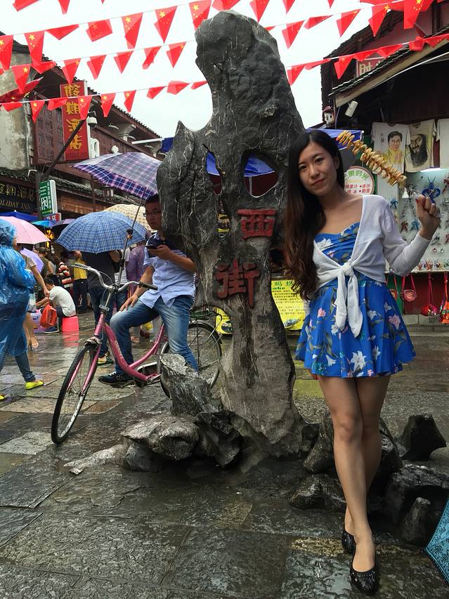 下了一天雨,专门穿了外套,结果好热,在景区门口等宾馆的人来接