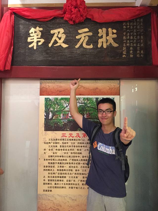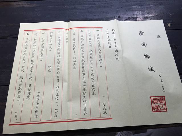 下午去了靖江王府,我其实不太感兴趣,不过听说是5A景点,所以按耐不住好奇心去探访了一番,一路还有导游详细介绍,王道、王府、奇秀峰、太岁洞,我们找到了自己的太岁:庚午太岁王济大将军。每个人都有自己的太岁,按照生辰年月找到他,所谓的太岁也就是你的守护神。王府景点游览最后,有一个模仿秀才考试还好玩一点,模仿古代秀才考试,洗照片要20,有点贵了,但是照的不错,也就买了,还送了电子版,感觉自己穿越了,哈哈