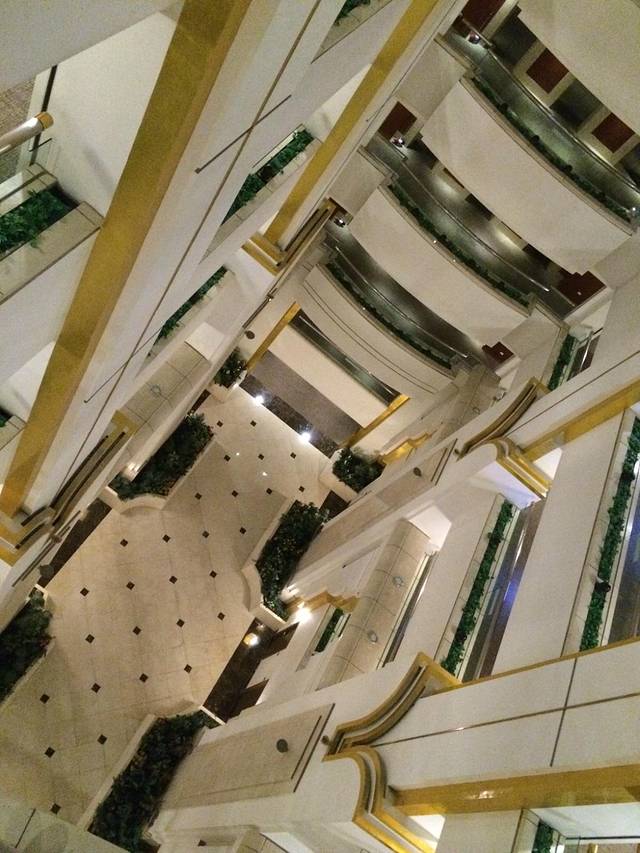 中庭又高又大,客房真是多啊,可见虽然有些老旧,规模还在。