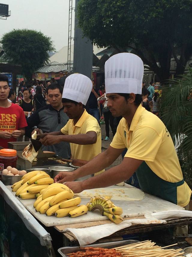 洋人街有印度阿三,他们做的印度飞饼真好吃,甜甜的,里面有香蕉,就是贵了点15元/张。