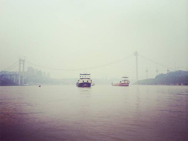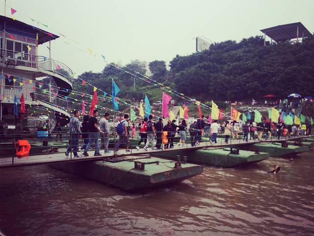 朝天门是两江交汇处,可是去了也没看到网上那个壮丽的景观,不知道是不是没走到地儿。而且这里人好多,我们就直接坐轮渡去洋人街了。(轮渡单程15元/人,往返20元/人,晚上7点是最后一班船,建议根据具体情况选择单程票或往返票,如果没有赶上轮渡,也是可以坐车回来滴。)