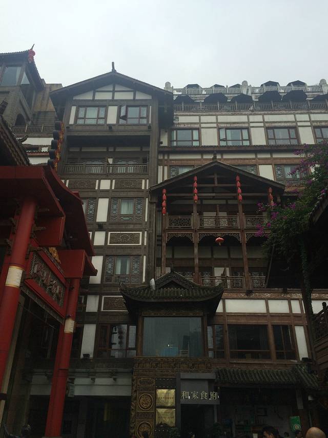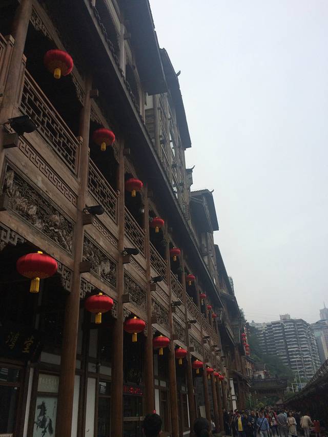 从解放碑去洪崖洞,我们是步行去的,距离不算远,洪崖洞坐落在山脚,还需下电梯好几层才能到,建筑风格比较有特色,里面的店面没有什么意思,我只买了一套明信片留作纪念。(每到一个地方旅行,我都会买一套明信片。)