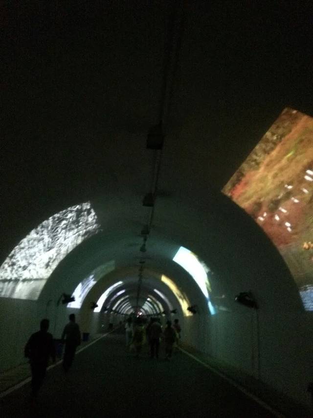 进门后要通过一个隧道,类似于厦门大学的芙蓉隧道,只是这里隧道两侧是投影倒的一些风景图,张艺谋印象系列影像~