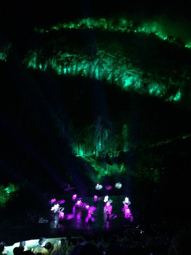 我们到重庆北火车站后吃了午饭就直接坐下午的火车去了武隆,到武隆火车站后拼车(30/人)到达住宿宾馆大概下午4点多,询问了宾馆老板,下午时间不够游玩一个景点了,所以临时改变行程晚上去看张艺谋导演的印象系列大型舞台剧之一《印象武隆》,在宾馆老板哪里买的票170元/人(原价是200多),来回是拼车,20元/人,表演时间为70分钟,我们看表演的时候,司机师傅就在外面等我们,把我们送到宾馆才收费,大概有40分钟路程。不得不说这里的人们真的很淳朴。
