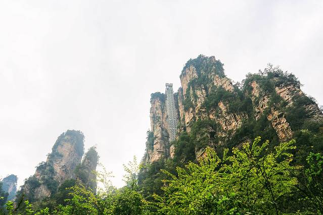 远远就看到百龙天梯屹立于崇山之间,仿佛与山峰融为一体,亲眼一见,十分壮观。
