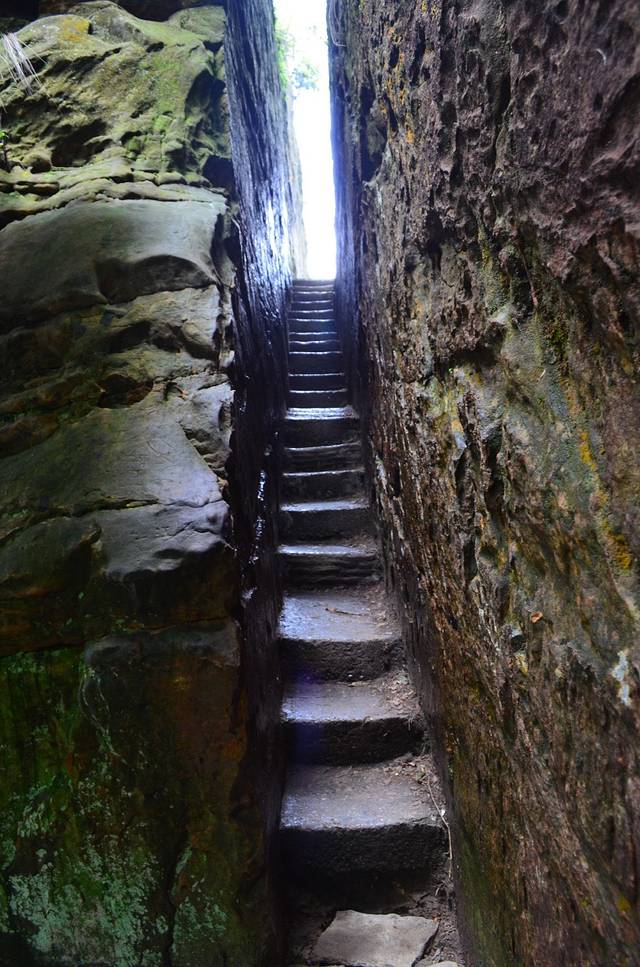 由很多小树枝支撑着,也许是为了防止薄薄的石片坍塌掉下来